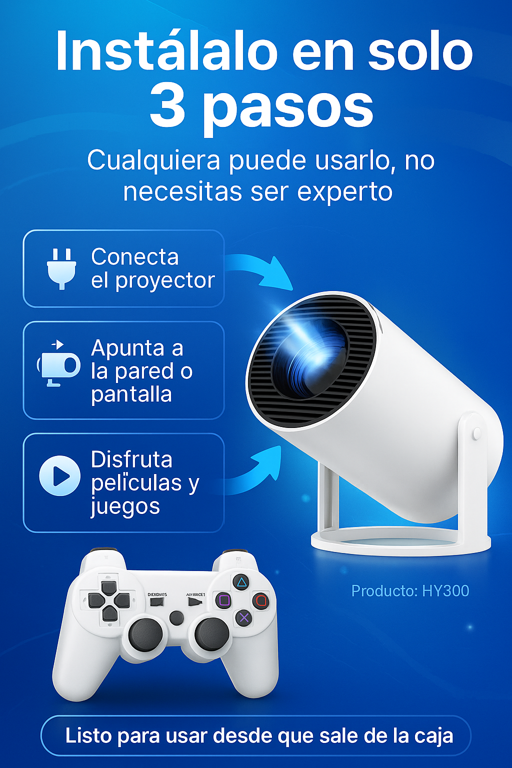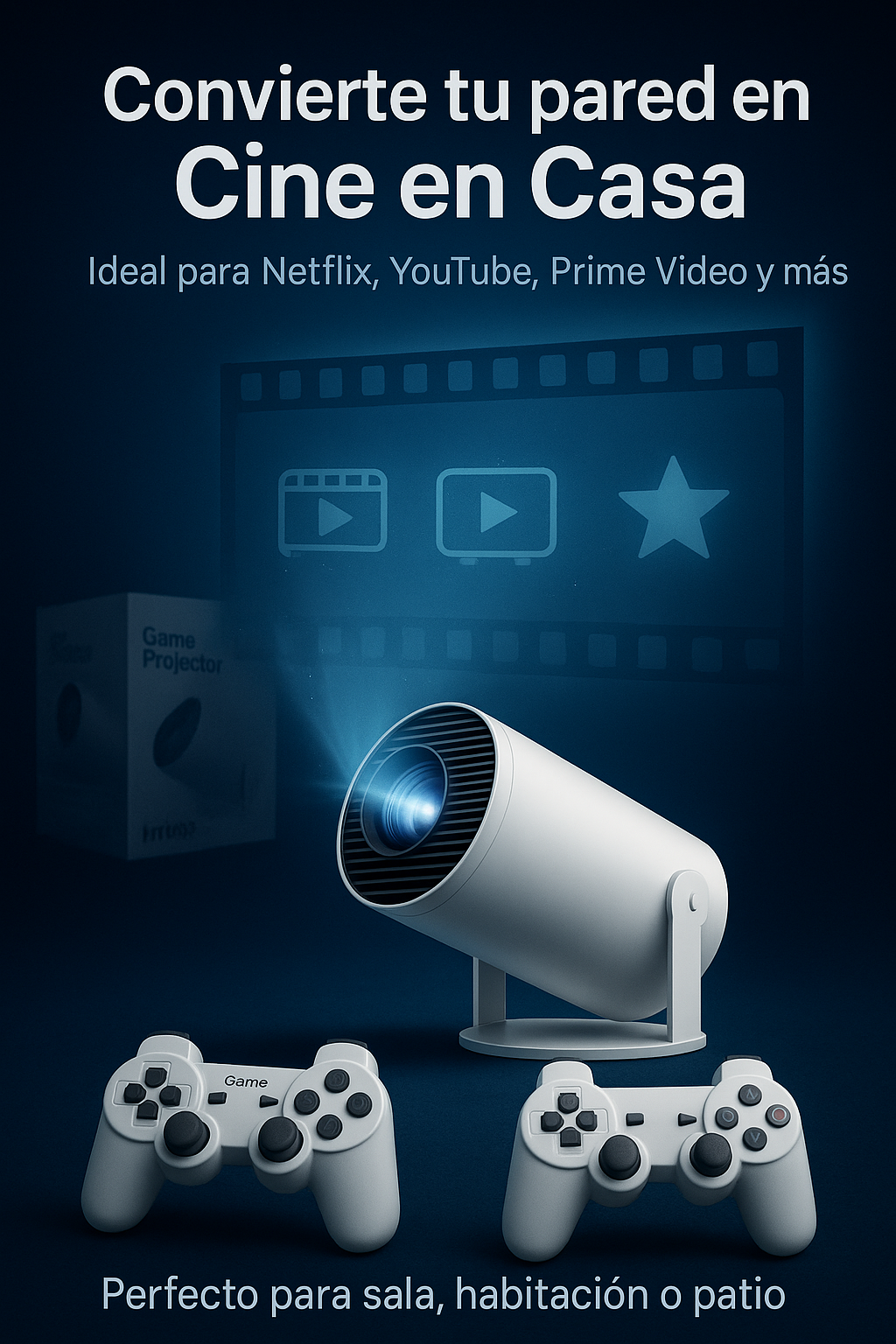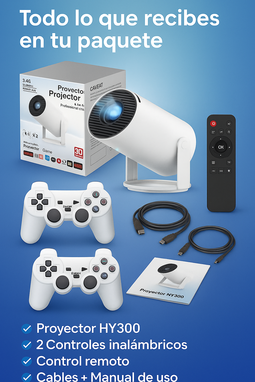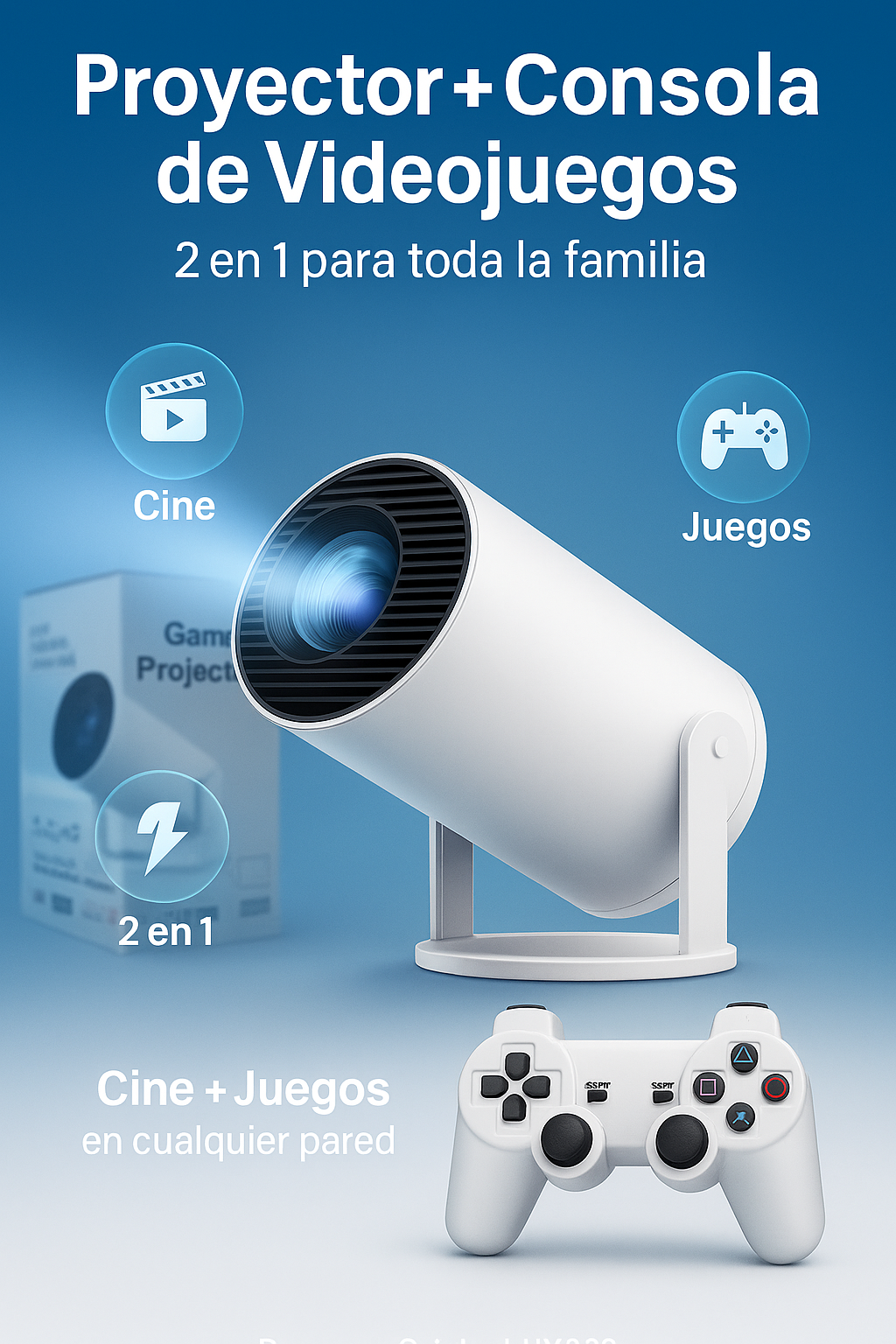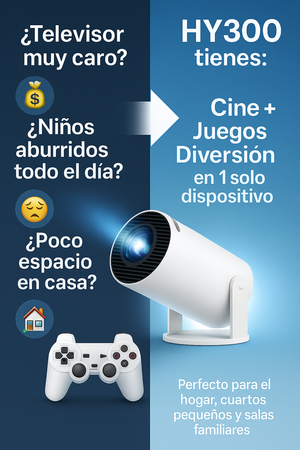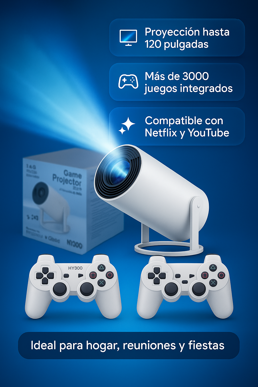 El PlayBeam HY300 proyecta imagen y sonido sobre cualquier superficie lisa, permitiéndote ver películas, series, contenido online y videojuegos en pantalla gigante. Su chip profesional optimiza brillo, color y estabilidad para una proyección clara incluso en habitaciones semi-iluminadas. Viene con juegos retro integrados y 2 controles para jugar en pareja.